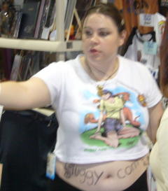 First, you're belly button is not a punctuation mark. Second, you should never wear a picture of someone cuter than you on your shirt. And third, shouldn't that navel have orange cones and guys in hardhats around it?